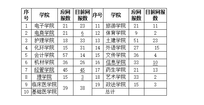 为认真做好永利yl23411集团官网第三届“互联网+”创新创业大赛组织工作,进一步引起各相关二级学院和部门的高度重视,提高永利yl23411集团官网教师和学生参加创新创业大赛的积极性和主动性,确保赛事各项工作进展顺利,并取得优异成绩。现将永利yl23411集团官网截止5月11日前各二级学院参赛报名情况统计并予以通报,详见下表。