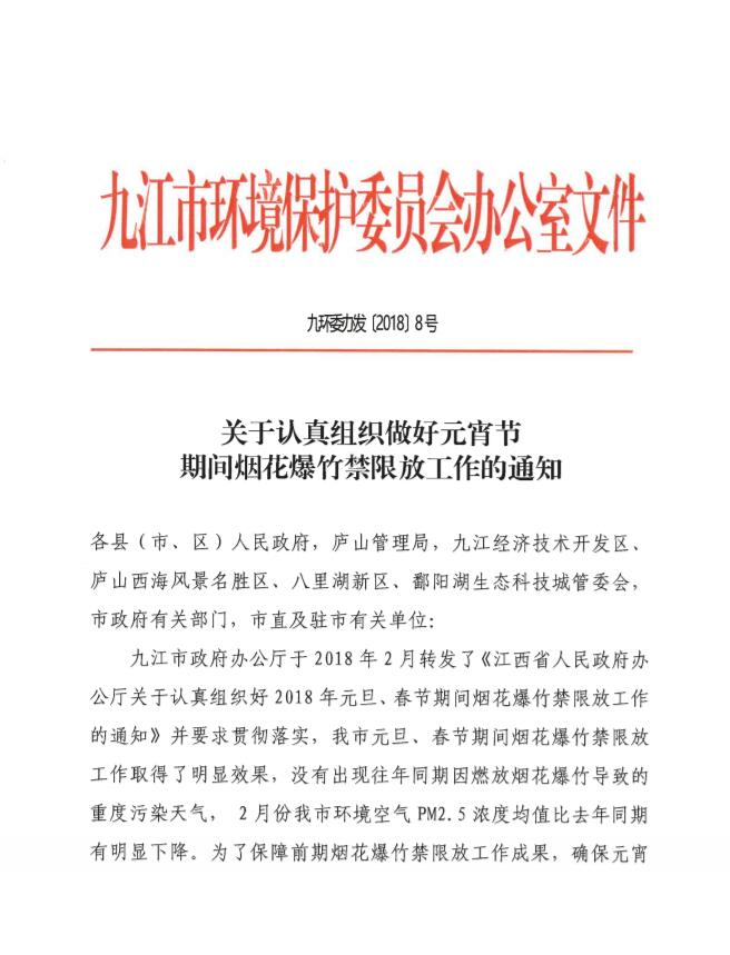 接市环境保护委员会办公室通知,现将《关于认真组织好元宵节期间烟花爆竹禁限放工作的通知》转发给你们,请迅速传达学习,认真贯彻落实。