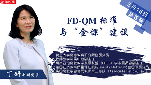 D-QM标准是复旦大学教师教学发展中心与美国知名在线教育质量保障机构“Quality Matters”经过两年多的合作开发而成的一个扎根于中国本土的高等教育在线课程质量标准,该项目研究曾荣获美国远程学习协会2017年度“全球影响力”奖。FD-QM标准坚持“以学生学习为中心”的理念,对接国家线上和混合式“金课”建设的要求,致力于改进广大教师在线/混合课程的设计,提高学生的学习质量。具体内容包括:1.为什么FD-QM标准体现了“金课”建设的要求?2. FD-QM标准是什么样的标准?3.以FD-QM标准进行课程改造的重难点是什么?