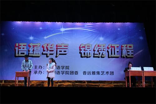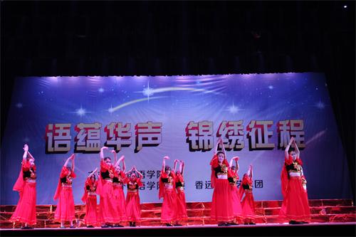 晚会伊始,主持人分别用中、英、日三种语言向大家介绍了外院“127”计划及三大特色教育,充分体现了外语专业的特色。晚会在现代舞协会带来的《神的随波逐流》中拉开了序幕,活泼欢快的节奏让大家很快融入晚会气氛中;声乐协会表演者慵懒声线演唱的歌曲《迷迭香》,让人沉醉其中,流连忘返;随后歌颂长征精神的快板剧《如歌的快板》更是热情激昂,令人心潮澎湃;小品《超级模特队》中,T台与小品相结合的形式让人耳目一新,赢得了观众的一致好评;由爵士舞协会带来的爵士舞《crazy+call me baby》活力四射,引爆全场,将活动气氛推向高潮。
