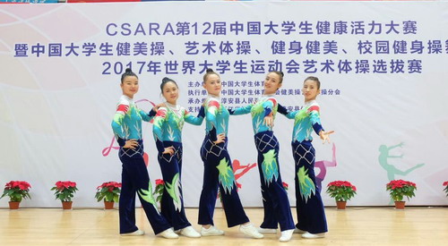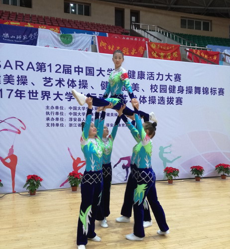 11月12日~19日,第12届中国大学生健康活力大赛暨2017年世界大学生运动会艺术体操比赛在浙江省淳安市举行,永利yl23411集团官网健美操队奋力拼搏,获得女子五人操第三名和混合三人操第四名的好成绩,这是永利yl23411集团官网健美操队在此类比赛中取得的历史性突破。
