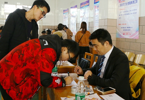 在招聘会现场可以看到,众多学生手捧着简历,穿梭在招聘单位之间,良好的交际能力、彬彬有礼的举止和和扎实的专业基本功为招聘单位所称赞。招聘会不仅招引了毕业生前来投简历,还吸引了大一、大二学生前来观摩。