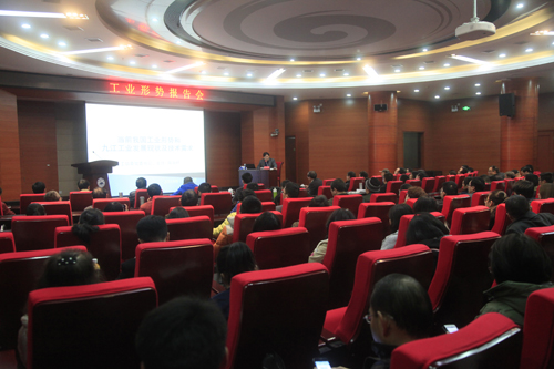 报告中,陈南桥从国际国内经济环境出发,通过数据、实例详细分析了当前的经济形势和工业态势、九江市工业产业发展情况及九江工业发展的技术需求等情况。陈南桥主任从事、分管工业领域工作长达30余年,对国际国内经济形势、九江工业发展情况有着十分专业的了解和分析。陈南桥主任指出,“创新发展的人才在高校,企业同高校联姻、联谊,一定能结出丰硕的成果”,他呼吁学校同地方企业积极合作,选择合适的研究方向,推动地方企业创新发展。