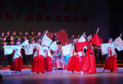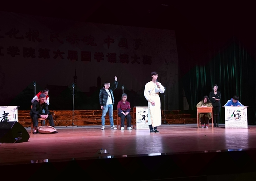 会计学院的《晏子说》,同学们用一问一答的表现手法,充分地展示了春秋战国著名的政治家、外交家、思想家晏子的形象。其聪颖机智、能言善辩,内辅国政,屡谏齐王,捍卫了齐国的国格和国威。经济与管理学院的所演绎的《汨罗魂》,生动地展现战国时期的爱国诗人屈原,他以一声“路漫漫其修远兮,吾将上下而求索”呐喊和《离骚》、《天问》、《九歌》等不朽的篇章,成就了其在人世间的绝唱。而旅游学院的《燕歌行》,又时空穿越般地把我们带回了唐朝。