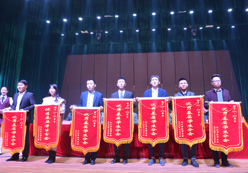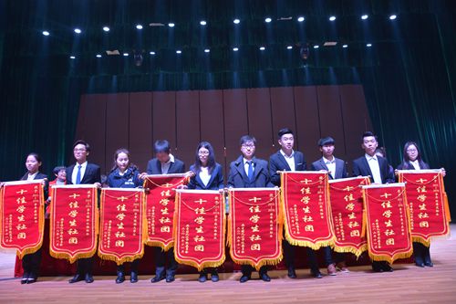与会领导为经管学院、会计学院、外语学院、政法学院、基础医学院、康馨专项等6支志愿服务队颁发了优秀青年志愿者服务队锦旗;为外语学院学生会、土建学院学生会、旅游学院学生会、经管学院学生会、艺术学院学生会、机材学院学生会、九江学院学生会(八里湖校区)颁发了“优秀基层学生分会”锦旗;为于占炅、占绍雄、刘思源、吴夏碧晨、冯永波、蒋永威、赵鑫、周影、施晨、叶莉梅等10名学生干部颁发了“十佳学生会干部”荣誉证书;为方舟生态协会、跆拳道协会、蝶湖文学社、南山国学社、大学生记者团、交谊舞协会、摄影协会、绿江环保协会、濂溪诗社、DV影视协会等10个学生社团颁发“十佳社团”锦旗,就新任校团委干部,学生会干部代表,学生社团干部代表颁发团学干部聘书。