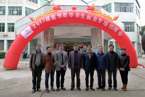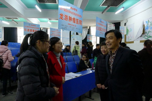 12月18日,永利yl23411集团官网2017届医学类毕业生就业洽谈会在庐峰校区举行。为了更好地做好医学类毕业生的就业工作,副校长杨耀防、夏启国,招生就业处处长肖国丰,医学部主任许礼生、副主任向维聂,临床医学院院长张志平、党委书记张南华、副院长贾宗林,护理学院党委书记丁蓉,亲临招聘会场,了解招聘情况,指导毕业生就业工作。