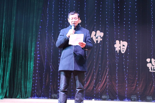12月19日晚,文传学院2013级播音与主持专业毕业晚会在校大礼堂隆重举行,副校长王万山与文传学院院长吴国富、党委书记汤红莲,副院长周子渊、吴疆、办公室主任田中兴老师、团委书记郭英俊老师、播音教研室主任王苓老师一起出席了本次晚会。