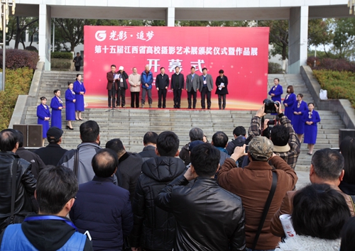12月23日下午,2016年江西省高校摄影学会理事会暨“光影·逐梦”第十五届江西省高校摄影艺术大赛颁奖仪式以及作品展开幕式在江西财经大学麦庐园艺术学院举行。省教育厅副厅长郭奕珊出席大赛开幕式,并为获得优秀组织奖单位颁发奖牌、宣布大赛作品展开展。