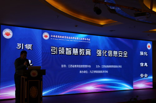 12月23-24日,由永利yl23411集团官网信息技术中心承办的江西省高校教育信息化学会第三次学术年会在校举行,教育部教育信息化专家组秘书长、华东师范大学党委常务副书记任友群教授,中国高等教育学会教育信息化分会副理事长、复旦大学信息办主任宓詠教授,江西省高校教育信息化学会理事长、南昌大学原副校长李建民教授等领导和专家,以及来自全省62所高校和30余家企业会员的250余名嘉宾莅会,九江学院副校长纪岗昌教授和江西省教育信息管理中心主任徐峰教授出席开幕式并致辞,高朋满座,共襄盛举。开幕式由学会副秘书长、九江学院信息中心副主任舒长兴主持。