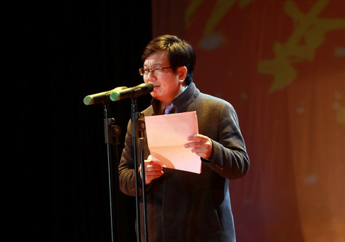 晚会开始前,副校长王万山发表了热情洋溢的讲话。他首先代表校党委、行政向浔东校区师生员工和离退休老同志致以节日的问候和新年的祝福。王副校长在讲话中回顾了一年来学校在教学、科研、管理、服务等各项事业取得的一系列令人振奋的成绩,勉励大家在“十三五”开局之年里要加倍努力地工作,以优异的成绩迎接九江学院美好的明天。