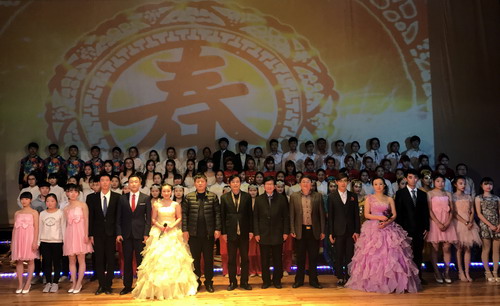 演出结束后,伴着欢乐的节拍,校领导走上舞台,与演出人员亲切握手,并与大家合影留念。至此,整台晚会圆满结束。