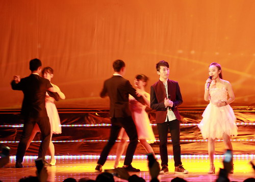 药生学院许越、庞雅心带来的歌曲《我好想你》用优美的歌声唱出了对纯真的情感和真挚爱情的向往,现场观众跟随歌声摇动手里的荧光棒,将晚会推向一个高潮。
