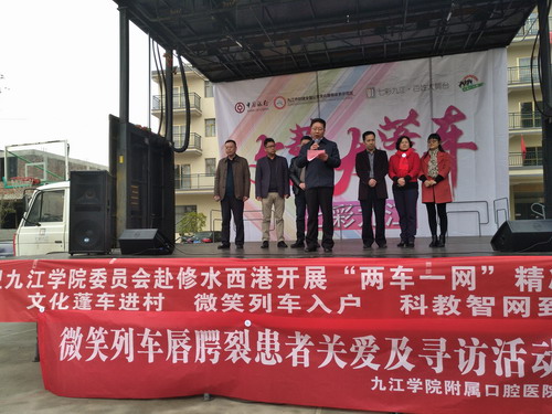 推进健康扶贫、补齐健康短板,以健康扶贫助推健康致富。民盟九江学院委员会联合九江学院附属医院和口腔医院,开微笑列车进村入户,寻找唇腭裂患者,开展免费治疗手术,并为康复儿童送去了慰问金和慰问品,彻底解除患者的痛苦和由此带来的贫困,让微笑健康永驻百姓心中。
