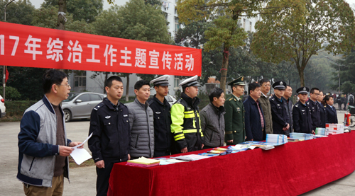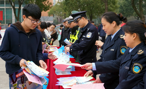 为推动广大师生积极参与校园治安综合治理,共同建设和谐校园,在校园营造“综治工作人人有责,和谐校园人人共享”的浓厚氛围,根据学校2017年度综治工作安排,3月17日上午,学校在学生活动广场举办了2017年度综治工作主题宣传活动,拉开今年综治宣传的帷幕。副校长夏启国出席活动并观看了宣传展板,信息学院、外语学院、化环学院、理学院、机材学院、后勤管理处、学生处、保卫处负责人及500余名师生参加了活动。