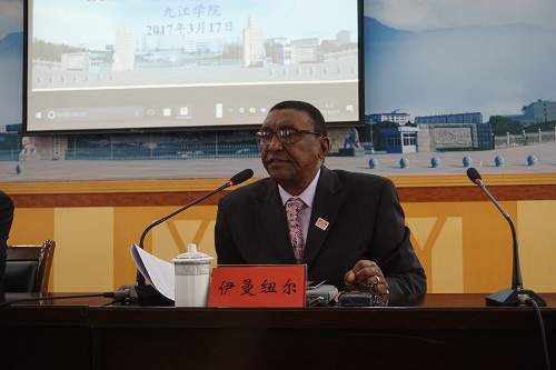 萨凡纳州立大学国际教育中心主任伊曼纽尔(Emmanuel)发表致辞。他代表萨凡纳州立大学校长多齐尔(DOZIER)对九江学院两年多以来对孔子学院的支持与帮助和此次的热情接待表示衷心的感谢。他指出,在与九江学院合作的过去两年多里,孔子学院在中方院长罗其娟和外方院长布拉德(PEGGY BLOOD)的领导和辛勤工作下,通过教授汉语语言和举办文化活动,让更多的人了解了中国文化,取得了可喜的成绩。希望九江学院和萨凡纳州立大学未来继续加强合作,继续开展师生交流和学术研究等项目,促进两校以及两校合作创办的孔子学院取得更好的发展。最后宾主双方互赠纪念品并合影留念。