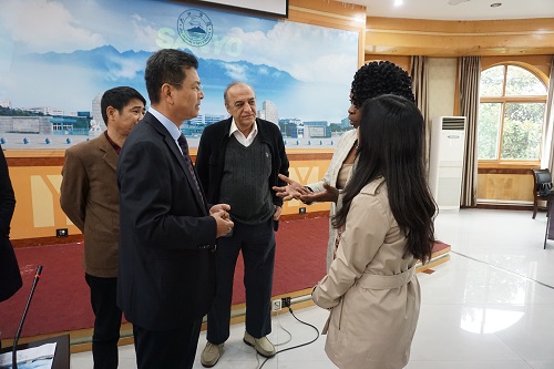 刘晓东校长首先发表致辞,他代表全校师生对来自美国佐治亚州萨凡纳市的访华团成员们表示热烈的欢迎。接着,他对九江学院的历史文化和发展情况作出了介绍。他提到,名山、名江、名湖、名城,造就了九江学院的灵气,尤其是具有千年历史,享有天下书院之首美誉的白鹿洞书院,更为学院赋予了深厚的文化气息和办学氛围。最后他谈到,为使得访问团成员能够更好地体验中华文化,永利yl23411集团官网对这次访华团代表的行程做了精心安排:既有自然风光欣赏,又有人文景观体验,更有多场文化讲座,相信各位成员此行一定会收获颇丰,也希望大家继续为萨凡纳州立大学孔子学院的各项工作提供支持和帮助。