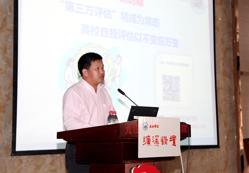 根据教育部和省教育厅的要求,九江学院将于2018年下半年接受本科教学工作审核评估。4月28日下午,九江学院本科教学工作审核评估专家报告会暨第155期濂溪讲坛在香远楼三楼报告厅举行。校党委副书记、校长刘晓东到会作动员报告;教育部评估专家、同济大学特聘研究员、教授李亚东博士做了题为“审核评估“五个度”与高校自我质量保证”的报告。校领导魏立平、纪岗昌、王万山、陈春生、陶春元、杨耀防、夏启国、查振华,全体副处以上干部,各学院教务科长、学生科长、团委书记、教研室主任参加了报告会,报告会由副校长陈春生主持。