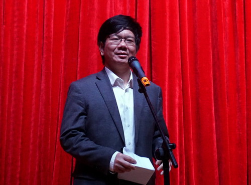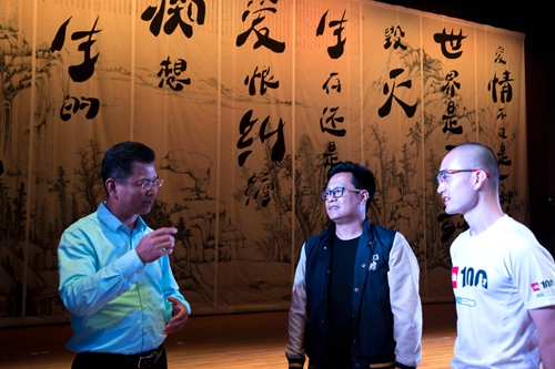 演出结束后,校领导刘晓东、魏立平、王万山走上舞台与主创人员合影留念,并交流观看体会。