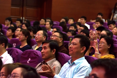 校领导刘晓东、魏立平、王万山与2000余名师生代表一起观看了两场演出。刘晓东、魏立平亲切会见了该剧总导演、永利yl23411集团官网客座教授、北京外国语大学艺术研究院院长孙萍女士。刘晓东校长对孙萍女士把九江选为《杜丽娘与朱丽叶》全国巡演的首站,把高雅艺术带入九江学院表示衷心的感谢。王万山副校长在演出开始前致辞。孙萍女士向观众介绍了“跨界戏剧”的有关知识。