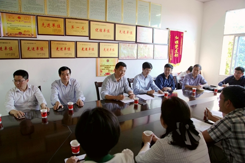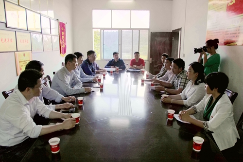在村委会会议室,刘晓东与武宁县委常委、宣传部长卢洪温,官莲乡乡长邓卢武、东山村支部书记陈希才等进行了座谈,分别听取了他们对脱贫攻坚的总体要求和目标任务,以及东山村今年建设四个示范组、主干道绿化亮化、文化中心扩建项目和土地流转发展特色种植养殖业等情况介绍。同时他还听取了永利yl23411集团官网旅游与国土资源学院院长李松志就该院帮助东山村做乡村旅游规划、驻村第一书记谭翊泉就永利yl23411集团官网2015年来在东山村开展精准扶贫工作的情况汇报。