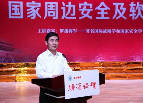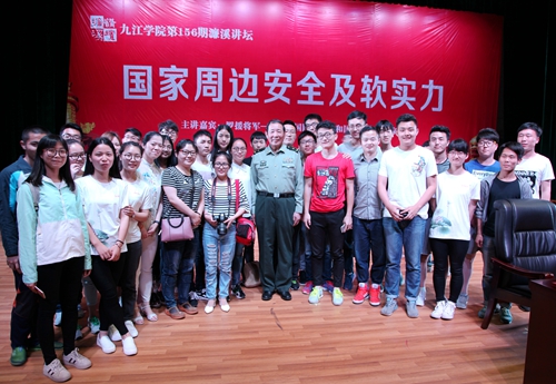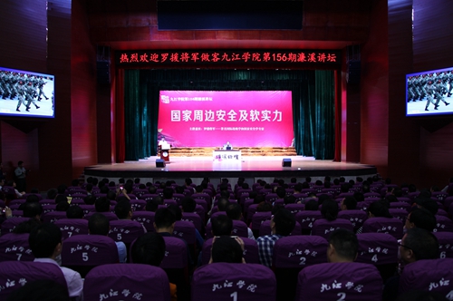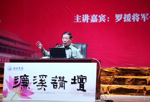 罗援将军的报告不仅是一堂份量厚重的国防教育课,更是一堂饱含深情的爱国主义的教育课,报告强调要大力弘扬民族精神,弘扬爱国主义,要坚决捍卫主权,坚决维护祖国统一,构筑民族精神和爱国主义的钢铁长城。使在场听众进一步认清了当前国防形势和周边动态,增强了国防观念和忧患意识。报告结束后,罗援将军还与现场师生进行了互动,回答了师生提出的问题。罗援将军还为永利yl23411集团官网濂溪讲坛题词:“与九江学院师生共勉:精忠报国”。