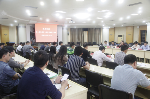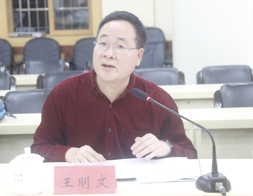 汇报会由王明文教授主持,他表示根据省学位办的安排,受学校邀请,专家组一行5人到九江学院进行学士学位增列审核评估,感谢九江学院领导的热情接待,这是一次宝贵的学习交流机会,评审期间将认真完成各项工作。