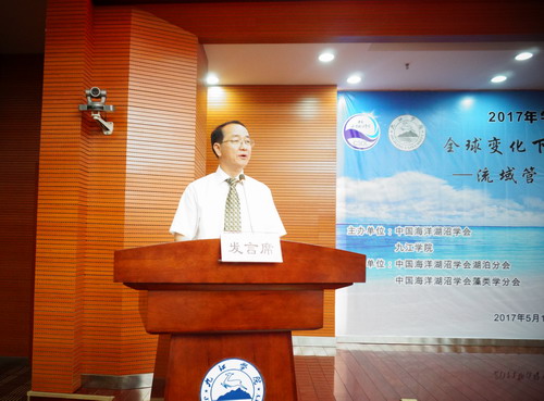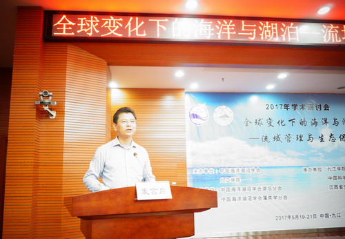 5月20日上午,由中国海洋湖沼学会、九江学院主办,中国海洋湖沼学会湖泊分会、藻类学分会支持,九江学院鄱阳湖生态经济研究中心、中国科学院鄱阳湖湖泊湿地观测研究站、江西省生态学会共同承办的“全球变化下的海洋与湖泊—流域管理与生态保护2017年学术研讨会”在永利yl23411集团官网逸夫馆报告厅隆重开幕。大会开幕式由九江学院副校长、鄱阳湖生态经济研究中心主任陶春元主持。