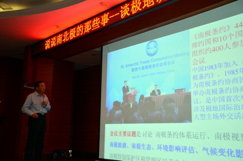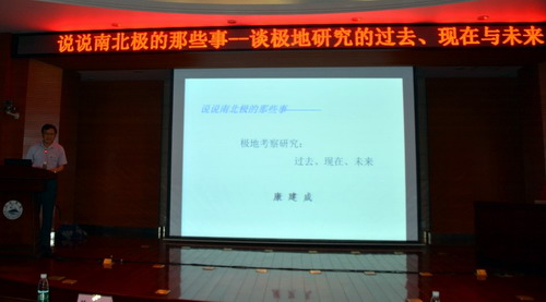 康教授结合自身研究和工作实际,围绕南北极地理地貌、气候变化、生态环境、考察探险等方面,深入浅出、图文并茂、数据详实、表述生动,为永利yl23411集团官网师生展示了当今国际国内极地研究的热点问题和进展。康建成教授先后在美国新罕布什尔州立大学地球海洋空间研究所、法国原子能委员会“气候与环境科学实验室(LSCE)”、法国国家科学研究中心“冰川•地球物理•环境实验室(LGGE)”、美国阿拉斯加州立大学国际北极研究中心从事研究,两次参加澳大利亚国家南极考察队,多次参加中国国家南北极考察队。
