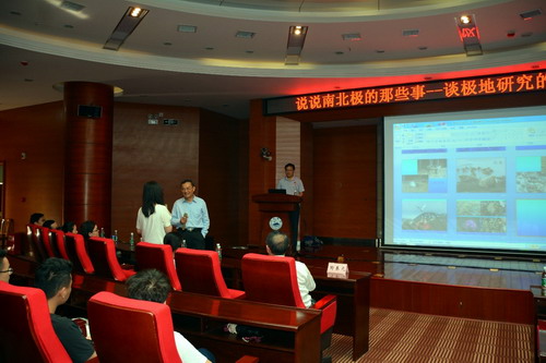 康教授报告受到参会教师和学生热烈欢迎,康教授还进行了现场答疑,对师生关心的全球气候变化和南北极等问题进行探讨,氛围积极自由。