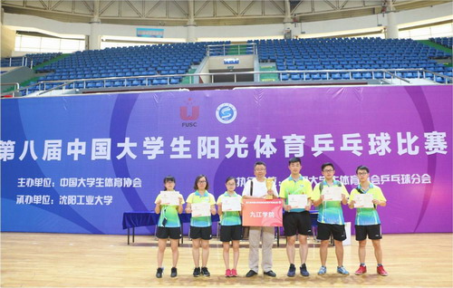 永利yl23411集团官网乒乓球队是首次参加全国大学生乒乓球比赛,在教练韩开焱老师的带领下,队员们在比赛中充分发扬顽强拼搏、敢打敢拼、永不言弃的精神。经过激烈的角逐,在最后的比赛中以1: 3不敌上海复旦大学,最终获得全国混合团体赛二等奖的好成绩。乒乓球队在组队训练到参加比赛短短两个月的时间内,能取得这些成绩离不开学校以及学院党政领导的重视与支持,更离不开全体教练员得甘于奉献和运动员的顽强拼搏。九江学院乒乓球队将继续刻苦训练,积极备战,随时准备迎接新的挑战,为九江学院争光添彩。