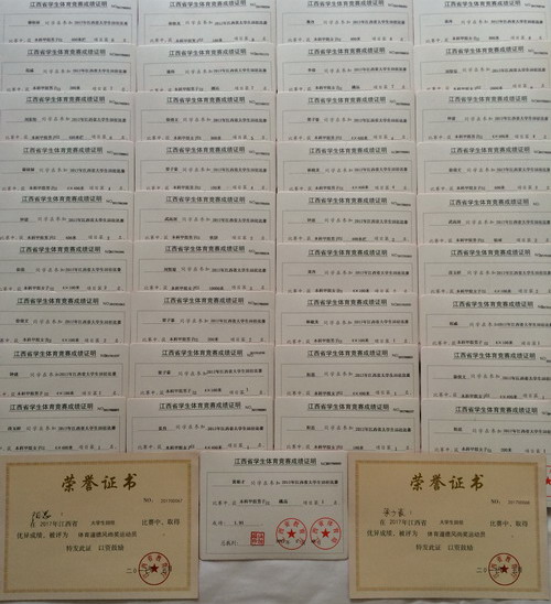 在刚结束的2017年的江西省大学生田径比赛中,永利yl23411集团官网田径健儿努力拼搏勇夺5金6银2铜的好成绩,一共获得37个前八名,阳思和梁子豪同学获得优秀运动员称号,陈剑兴老师获得优秀教练员称号。本次赛事是由江西省教育厅、省体育局主办,江西师范大学、江西省学生体育协会承办的省内大学生最高水平的田径赛事。
