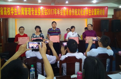 会议对2016年高校公寓管理先进集体、先进个人和感动公寓人物进行了表彰。永利yl23411集团官网被授予2016年江西省高校后勤协会公寓管理专业委员会“先进集体”,林蓉、龚红风、赵琼、汤丽娜等四名同志被评为“先进个人”,龚红风同志被江西省高校后勤协会公寓专业委员会评为“感动公寓人物”。会议安排了南昌大学等三所高校进行了公寓管理经验交流。组织参观了赣南师范大学、江西理工大学、江西环境工程职业学院学生公寓,并对传统文化进学生公寓进行了研讨。