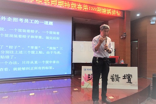讲座中,顾沛教授从六个方面展开讲述数学之美的文化内涵。一是数学之美”体现在何处,二是什么是“数学文化,三是什么是“数学素养”,四是“数学素养”的重要性,五是如何在学习数学知识的同时提高数学素养,六是怎样学会感悟数学之美。顾沛教授认为,学生在学习数学知识固然重要,但学习数学的思想、精神更加重要,这有利于提高一个人的数学素养,终生受益。他表示,在当今社会十分重视人才的数学素养,一些企业招聘考试、高校的“自主招生”考试,往往与数学素养相关。在数学素养中,蕴涵并体现着丰富的数学之美,就看我们能不能理解它、掌握它,就看我们能不能透过现象看本质,感悟到数学之美。顾沛教授说,学习数学将帮助一个人提高思维品质,这要求我们“在数学学习中,不仅要学会数学知识,更要体会数学知识中蕴涵的数学文化。要掌握数学观点,理解数学思维,学会数学方法,了解数学思想,提高数学素养,逐步学会感悟数学之美。”