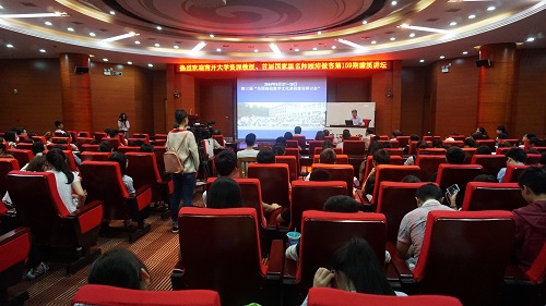 6月16日下午,南开大学资深教授、首届国家级教学名师顾沛教授做客永利yl23411集团官网第159期濂溪讲坛,在逸夫图书馆报告厅为永利yl23411集团官网师生带来了主题为“感悟数学之美——从数学文化谈起”的精彩讲座。省人大环资委副主任甘筱青到场听取了讲座,讲座由副校长陈春生主持。