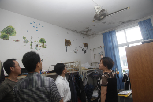 王万山一行先后来到学生三食堂广场、学生31栋宿舍、义丰楼、艺术学院新校区、浔东校区大礼堂,实地查看了路面积水、宿舍、教学楼的漏水情况,向相关单位负责人详细了解了各项情况。