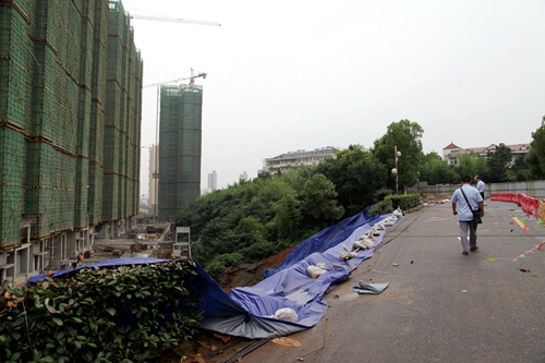 孙金淼副市长在现场询问了市国土资源局、市地质灾害应急中心等部门主要负责人及新天地项目投资方、建设方负责人关于高护坡滑坡的治理措施方案的情况。孙金淼最后强调,濂溪区要牵头处置好后续工作,治理工程要进行认真科学的设计,并经过严格的专家评审,九江学院派出专家参与项目设计方案的审查;项目方要把治理工程做成优质工程,确保安全。