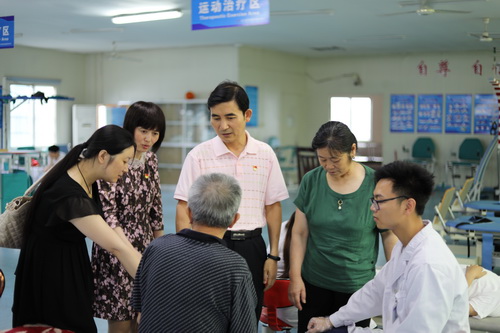 在市中医院康复中心,魏立平副书记看望了因病住院的退休党员吴少华老师,详细询问了吴老师的身体和治疗情况,当得知吴老师病情稳定,状况正在好转时,魏立平副书记很欣慰,他嘱咐陪同人员要关心退休教师和老党员,要带着感情、带着责任为他们办实事。