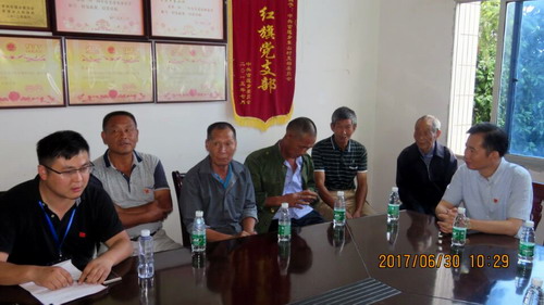 在交谈中得知,这几位老人都是村里的老党员,其中最年长的是有着44年党龄的何国洲,他1968年从部队退伍,担任了多年的村民兵连长,现在是村老年协会会长。老党员胡德奇是一位村医,他告诉赵伟同志:“九江学院扶贫工作做得细致,帮助村里解决了很多问题。我是一名医生,以前村里道路不通畅,有些危重病人送不出去,只能眼睁睁看着他们离去。学校驻村第一书记及时把村民的愿望反馈给学校,在学校领导帮助下对接市县有关部门,争取到了修路资金。随后,干群大干快上,把全村的泥土小路全部改建成了水泥路,彻底解决了村民出行的大难题。”赵伟听了很高兴,向老人们介绍了随行的查振华副校长,还问老人们是否认识扶贫工作队燕红波队长,让老人们有困难就找他们。