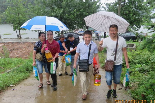 6月30日上午,当校党委书记赵伟一行冒着倾盆大雨来到学校精准扶贫点武宁县官莲乡东山村的时候,一场特色党日活动正在村委会举行。