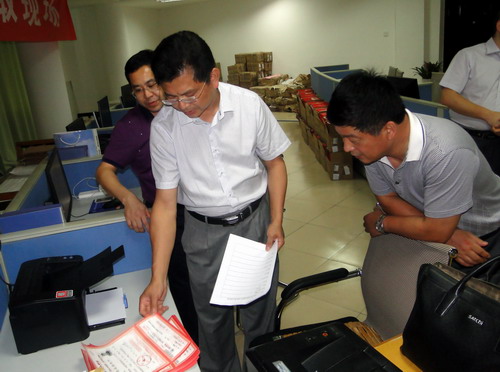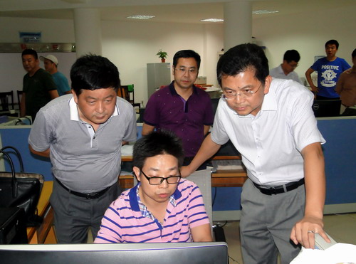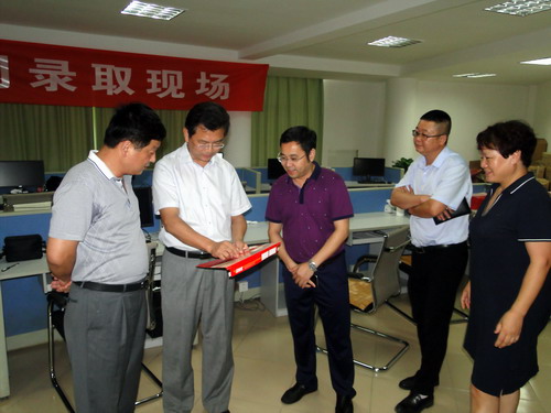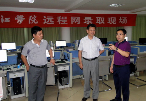 刘校长还与现场工作人员进行了交流,并来到电脑前仔细询问招生录取情况,鼓励大家要继续发扬吃苦耐劳的精神,持之以恒地做好招生工作,同时要求招就处要切实做好各项保障工作,为全体工作人员排忧解难。