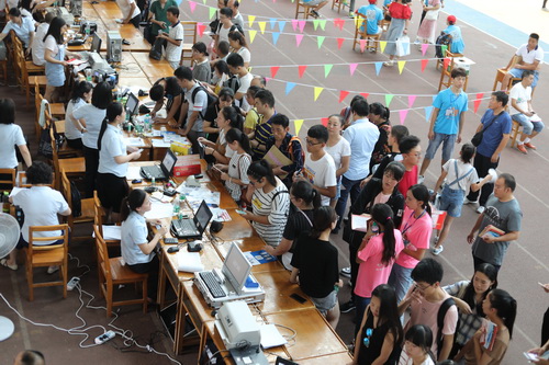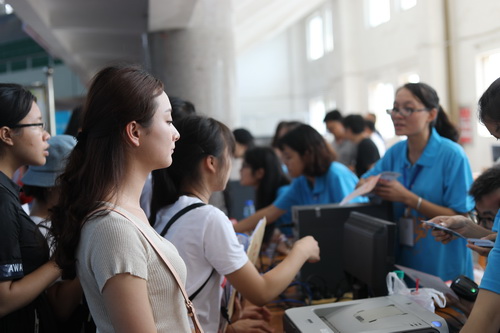 在三个校区新生报到现场,总咨询处、学生资助政策咨询处、财务收费处、校园卡咨询处、生活用品办理处和各二级学院的迎新工作点标志醒目、秩序井然。优化后的迎新工作系统更加科学、便捷,将许多报到手续进行前置处理,新生办理报到手续时,只需提交本人身份证和录取通知书。工作人员扫描读取录取通知书上的条形码,就可以获得学生的全部信息,省去了许多工作流程,大大提高了工作效率。学校为还为家庭经济困难新生在报到现场开通了绿色通道,让有经济困难的学生先报到入学,再按照国家资助政策帮助学生排忧解难,更好地为新生服务。