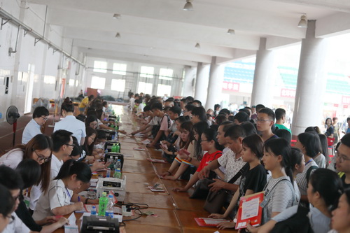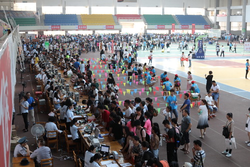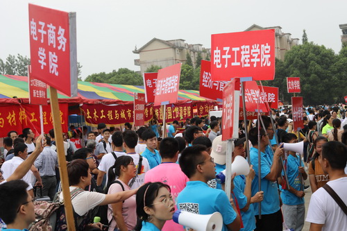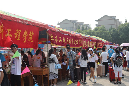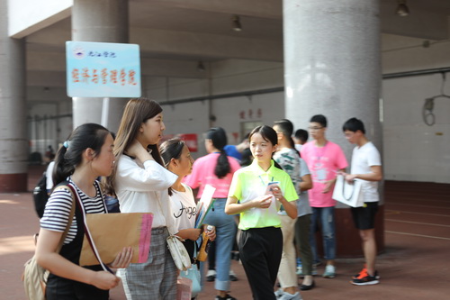 为确保迎新工作的顺利进行,学校各部门周密部署、精心组织,在九江火车站、庐山火车站和九江长途汽车站设置了大巴车专程接送新生和家长,大巴车到达报到现场后,早已有等候在这里的迎新志愿者高举着各个学院的引导牌在车门处热情地招呼着自己学院的学弟、学妹,带领他们到学院接待点存放行李、办理各项报到手续。