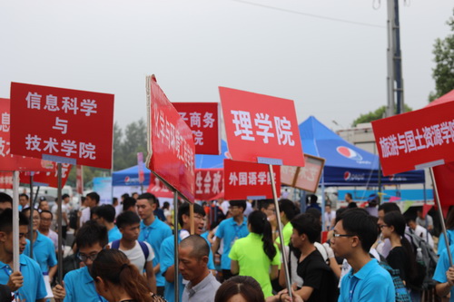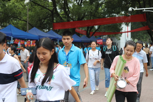 为方便自驾前来报到的新生和家长,各校区从校门开始,在主干道设置了醒目的路线引导牌直达报到现场,并在岔路口和停车场设置了引导岗,确保校园安全和迎新工作的顺利展开。