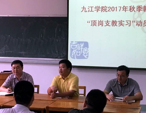 会上,陈春生副校长强调,支教顶岗实习是永利yl23411集团官网积极参与建设与振兴苏区发展战略,对口支援赣县建设工作的一部分。赣县区是一个山清水秀的好地方,同学们在外实习代表了学校的形象,要虚心求教、努力学习和认真工作,展现九江学院学子的良好风采。在外实习,要注意自身安全,特别是交通安全等。最后,陈副校长预祝同学们顶岗支教实习取得圆满成功并平安返校。