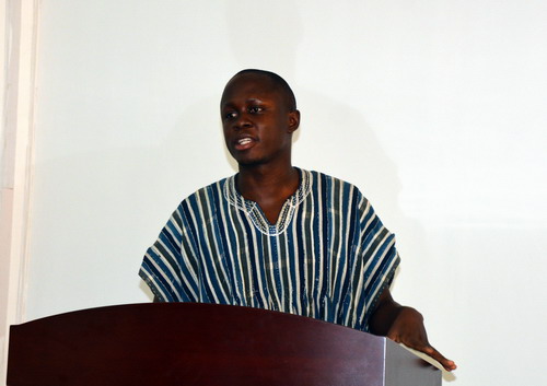 报告会期间,4位研究生分别围绕自己的研究领域、研究背景、研究内容、研究成果和今后研究计划作了学术交流汇报。杨期勇联合培养的兰州理工大学硕士生杨文锋报告题目为《小分子有机物对自养型氧化硫硫杆菌与异养型胶红酵母菌共培养的影响》、程鹏飞联合培养的江西师范大学硕士生秦羽枫和江苏大学硕士生David OSEI WUSU报告题目分别为《不同光质条件下小球藻、栅藻培养处理沼液的效果研究》、《Microalgae assimilation mechanism of ammonium and metal ions in Swine wastewater using biofilm attached cultivation》,周桂香联合培养的江西农业大学硕士生魏枫报告题目《生物炭对土壤的改良效应研究》。