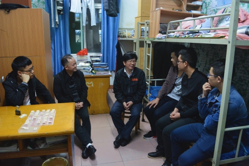 10月12日晚,王万山副校长来到信息学院学生宿舍31栋204寝室感受、体验学生生活。一到寝室,王副校长都亲切地询问同学们来自哪里,是哪儿的人,学习中有什么困难,并与同学们畅谈人生理想、学业规划、校园生活及如何正确面对未来生活中的困境等。针对同学们提出的问题给予了耐心细致的解释。当王副校长谈到人一要有担当,二要信守承诺,三要懂得方向时,同学们纷纷表示赞同,并说出自己心中的理想。王副校长还和同学们分享自己在大学时的亲身经历,让同学们在聊天中学到平时学不到的知识。同学们对王副校长的关心表达了衷心的感谢,表示要珍惜时间,扎实学好专业知识,养成良好习惯,营造良好的寝室文化。