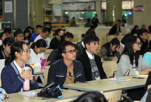 在学生三食堂,正在接受九江广播电视台记者采访的学生朱磊说:“国家各个方面给了我们这么好的环境,我们作为大学生,应该利用好这个环境,来更好的提升自己,加强自己的学习工作,以后更好的为国家服务,做国家的栋梁。”