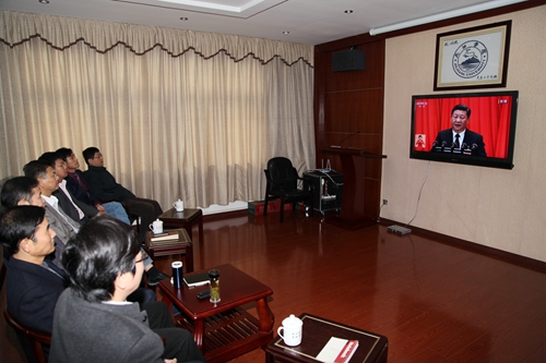 上午9时,校领导赵伟、刘晓东、魏立平、王万山、陈春生、杨耀防、夏启国等在行政办公楼四楼党委会议室集体收看了十九大开幕式,各二级学院党委、团委在各单位会议室,以及学生食堂师生一起集体收看,共同关注这一历史性的盛会。