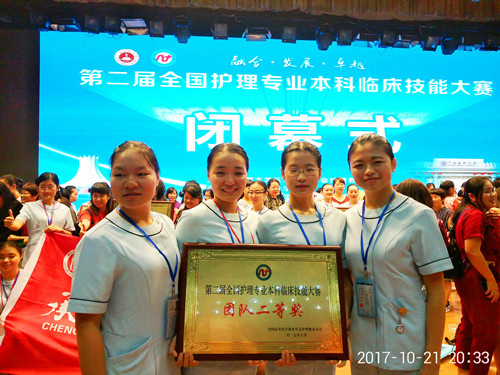 10月21日,第二届全国护理专业本科临床护理技能大赛在广西南宁圆满落幕。永利yl23411集团官网护理学院韩斗玲、邹敏、赖雪花三位老师指导的4名参赛选手A1411班徐可意、敖舒悦、欧阳婷和A1412班徐梦,在此次比赛中脱颖而出,取得优异成绩,荣获大赛团队二等奖,位居全省本科院校榜首。