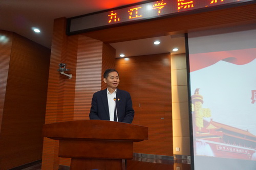 夏仕教授作了题为《中国共产党时代叙事与历史使命及担当》的专题报告,他从“什么是时代叙事、中国共产党进行着怎样的时代叙事、中国共产党为什么需要时代叙事、‘宏大叙事’背景下社会主要矛盾的转化”等四个方面论述了中国共产党的宏大时代叙事;从“新时代中国特色社会主义的历史使命、习近平新时代中国特色社会主义思想、新时代坚持和发展中国特色社会主义的基本方略”等三个方面阐述了新时代中国共产党的历史使命和指导思想;从“我们党对社会主义现代化建设作出战略安排、新时代中国共产党的历史担当(新征程)”等两个方面讲述了新时代中国共产党的历史担当。